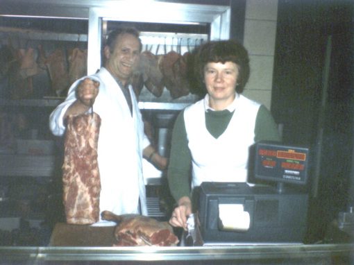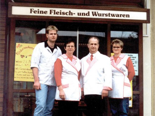 Nach der erfolgreich absolvierten Meisterschule erhält Frank seinen Meistertitel und beginnt gemeinsam mit seiner jetzigen Ehefrau Gabriele im elterlichen Betrieb. Gabriele Baur ist ausgebildete Fleischereifachverkäuferin und Fleischer-Gesellin.